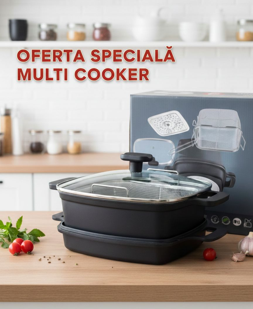 Transformă gătitul într-o plăcere cu acest set versatil de vase din inox de înaltă calitate. Designul ergonomic, completat de finisajul deosebit al mânerelor, aduce un plus de stil oricărei bucătării, de la cele clasice la cele moderne. De ce să alegi acest set? • Material Durabil: Fabricate din inox rezistent, vasele asigură o distribuție uniformă a căldurii pentru rezultate culinare perfecte. • Design Ergonomic: Mânerele cu aspect de lemn sunt tratate pentru a oferi o prindere sigură și confortabilă, rămânând reci în timpul utilizării. • Monitorizare Ușoară: Capacele din sticlă termorezistentă îți permit să supraveghezi mâncarea fără a ridica capacul, menținând aromele și nutrienții în interior. • Versatilitate Maximă: Setul include dimensiuni variate pentru orice rețetă – de la sosuri fine în cratița mică, la ciorbe consistente sau fripturi în tigaia adâncă. Setul Contine: - Oala cu capacitate de 2.1L si dimensiune 6 x 10.5cm - Oala cu capacitate de 2.1L si dimensiune 6 x 10.5cm - Oala cu capacitate de 2.9L si dimensiune 18 x 11.5cm - Oala cu capacitate de 3.9L si dimensiune 20 x 12.5cm - Oala cu capacitate de 6.5L si dimensiune 4 x 14.5cm - Tigaie cu interior non-stick - capacitate de 3.4L si dimensiune 24 x 7.5cm