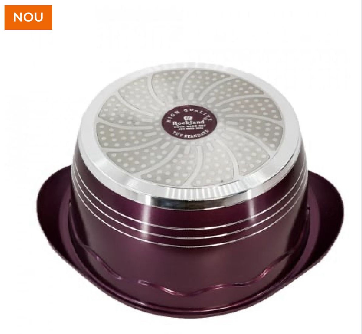 Oala din granit cu capac 24 cm Rockland este produs dupa cele mai riguroase standarde europene, din aluminiu turnat, invelit cu 5 straturi de granit la interior. Functioneaza pe orice sursa de caldura, putand fi folosit atat pe aragaz cat si pe plita cu inductie.